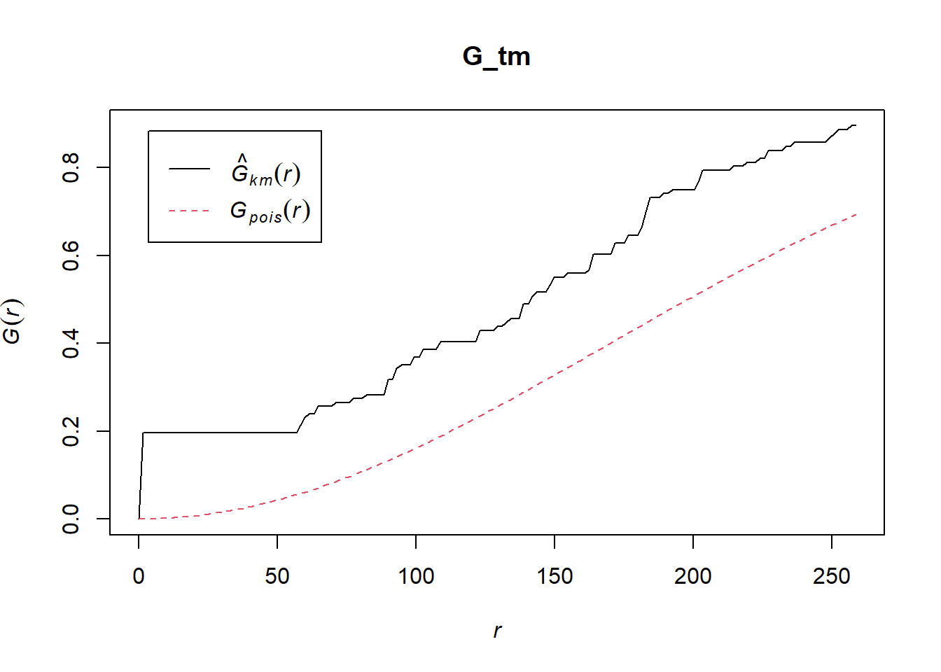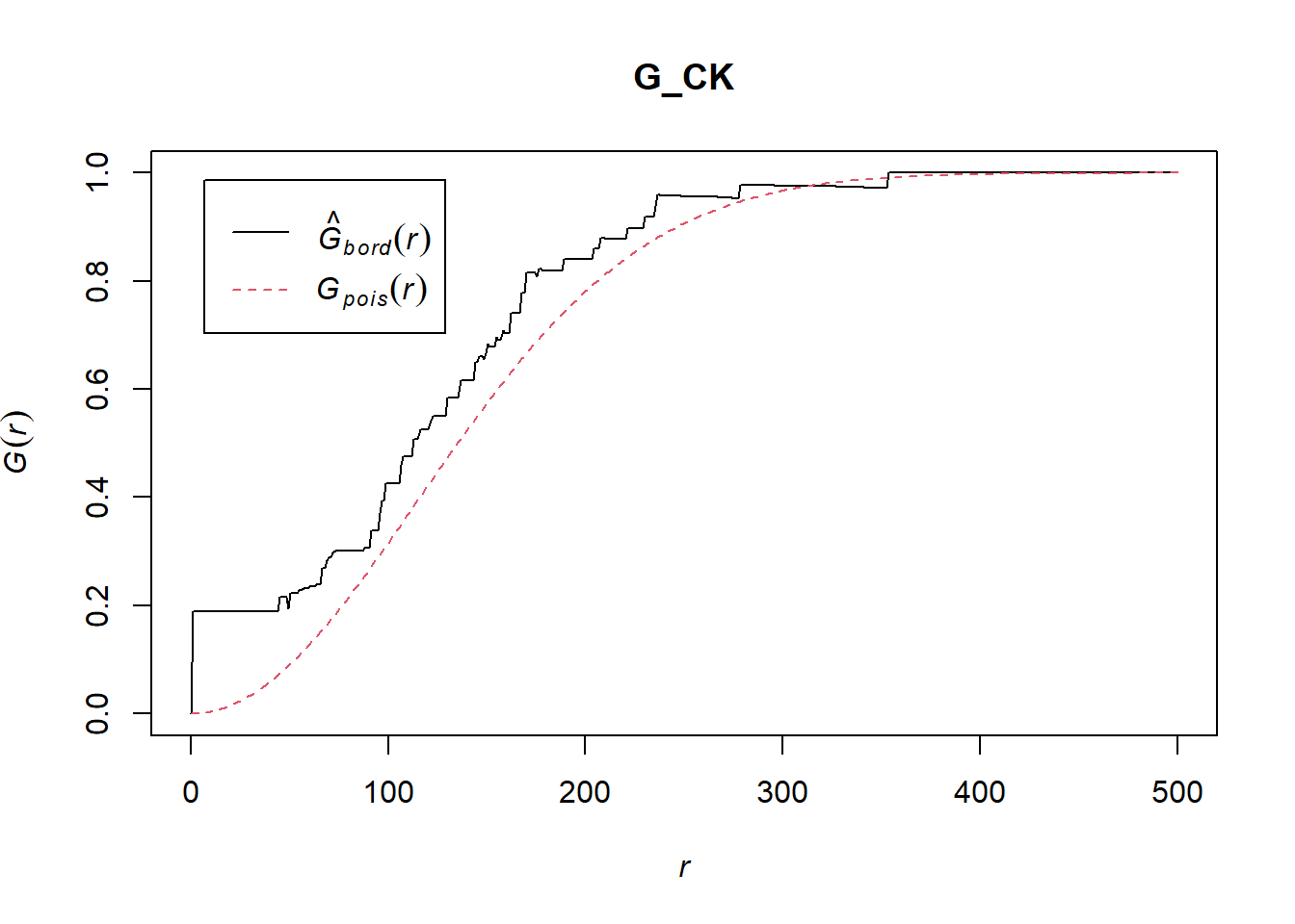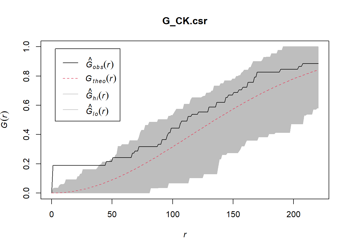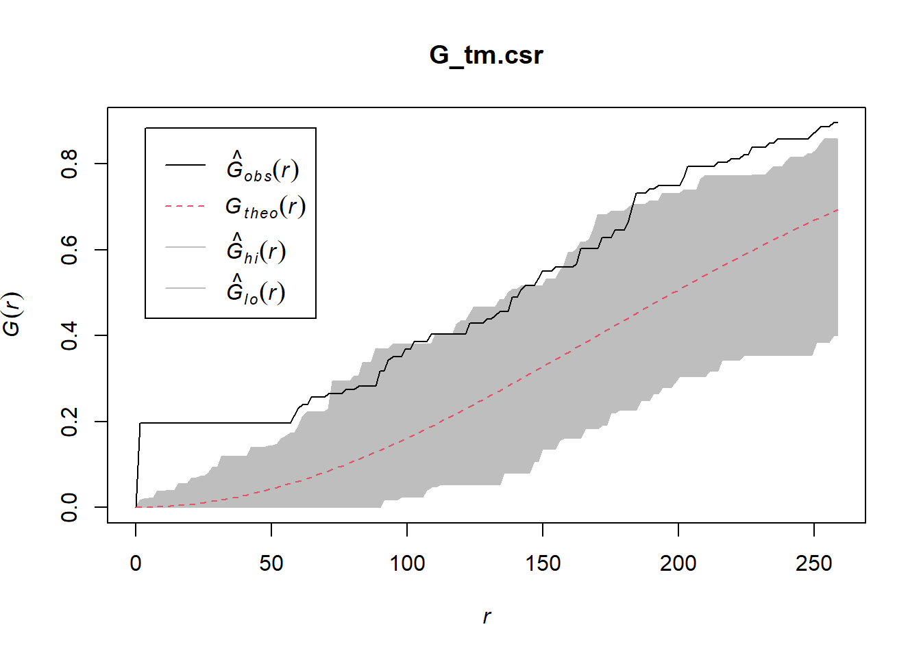 <- envelope(childcare_tm_ppp, Gest, correction = "all", nsim = 999) G_tm.csr