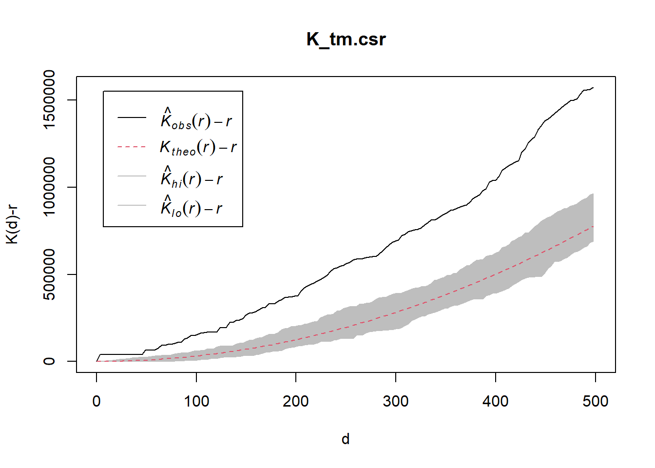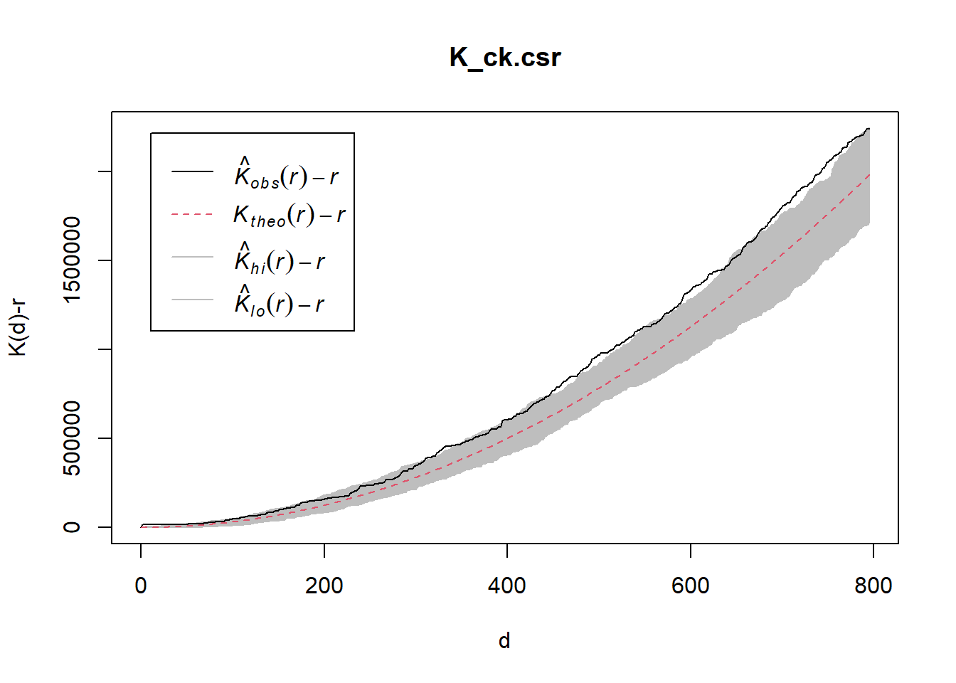 plot(K_ck.csr, . - r ~ r, xlab="d", ylab="K(d)-r")