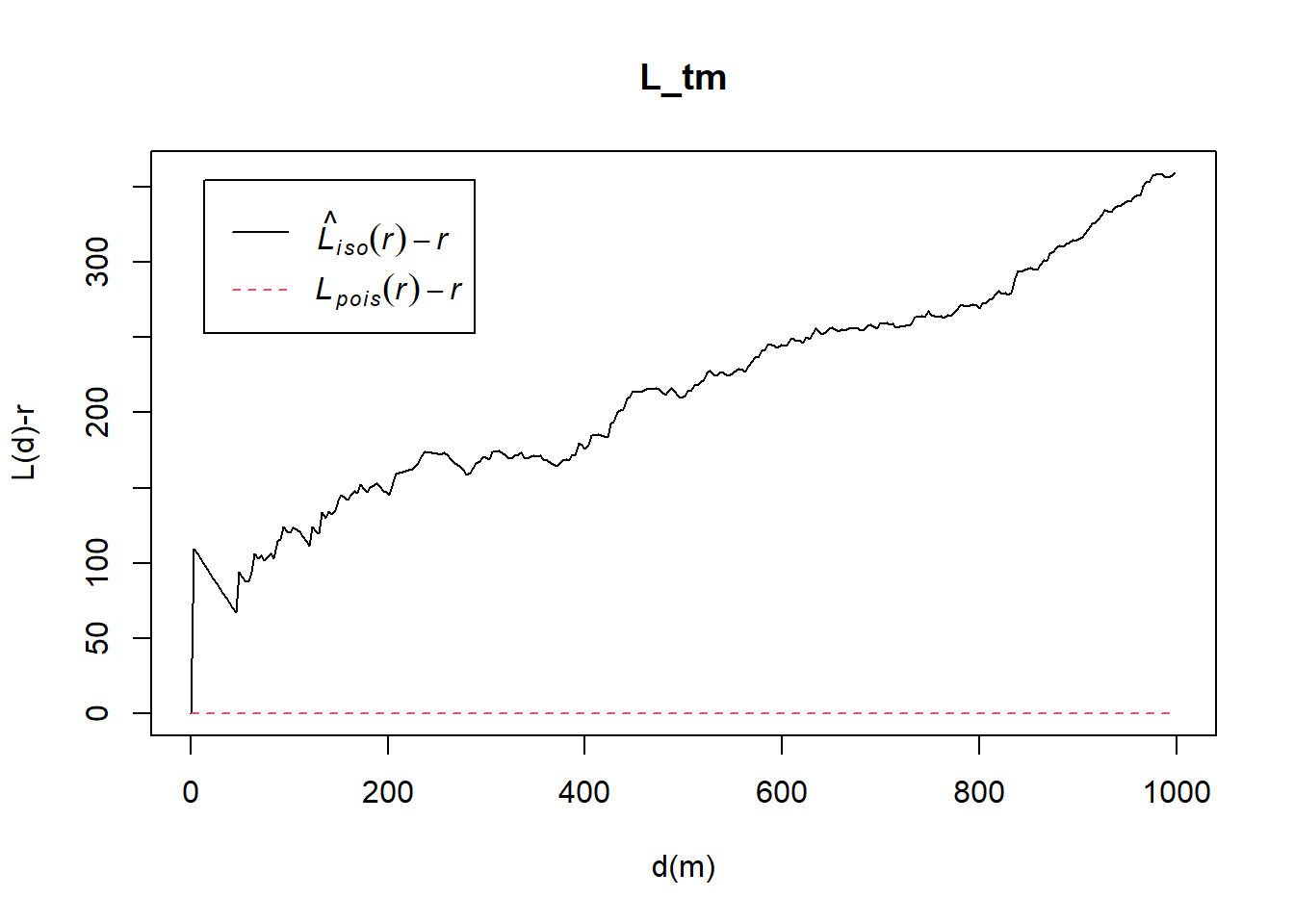 xlab="d", ylab="L(d)-r", xlim=c(0,500))
