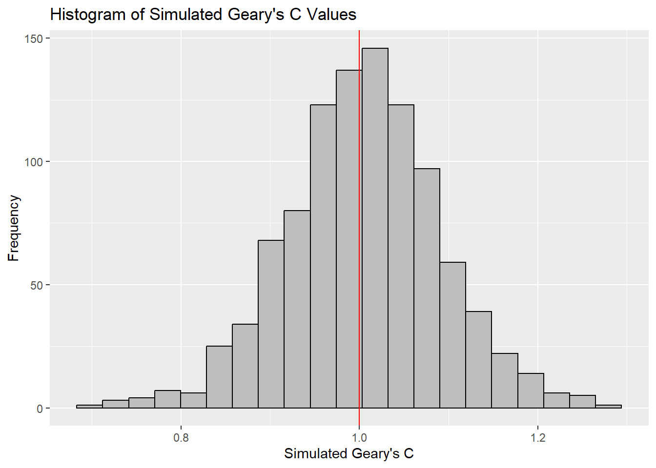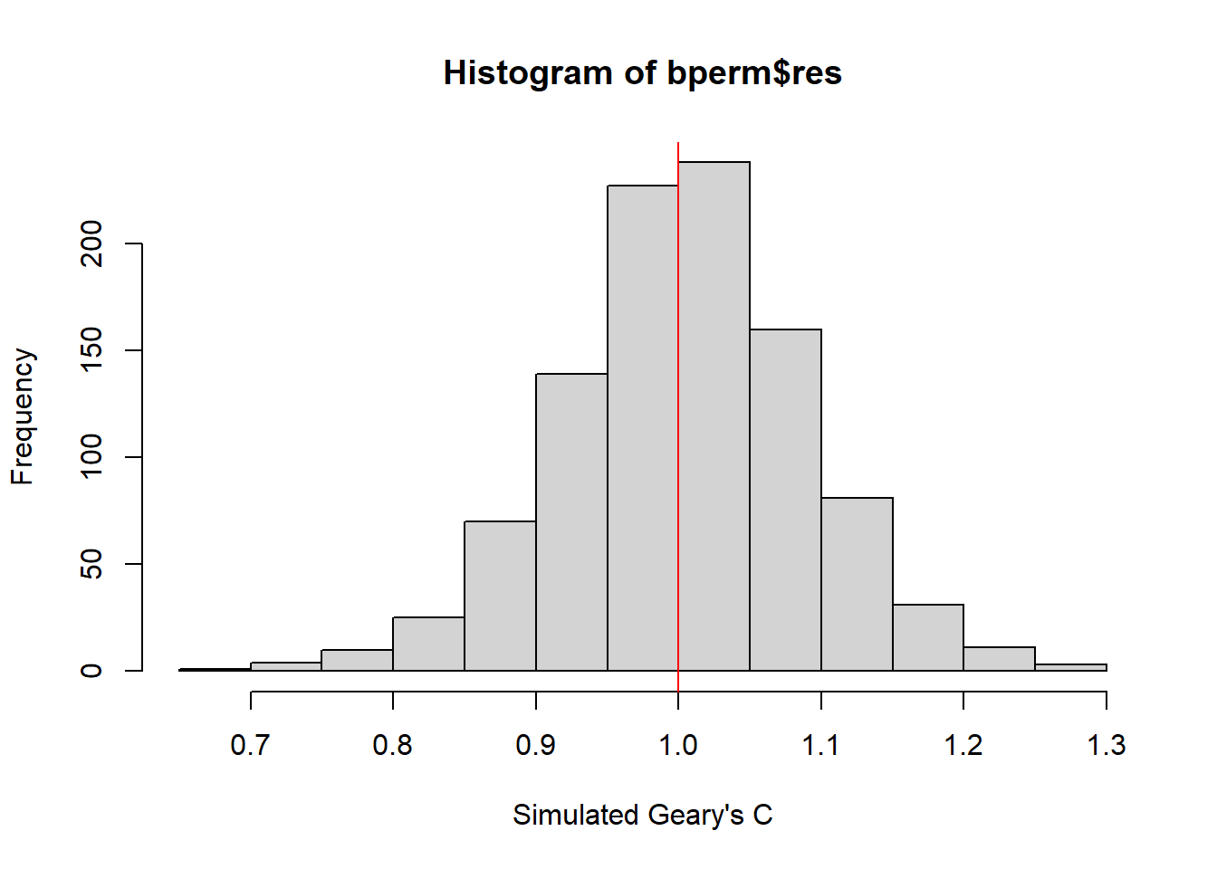 Similar to Moran’s I, it is best to test the statistical significance of Geary’s C using a Monte Carlo simulation.