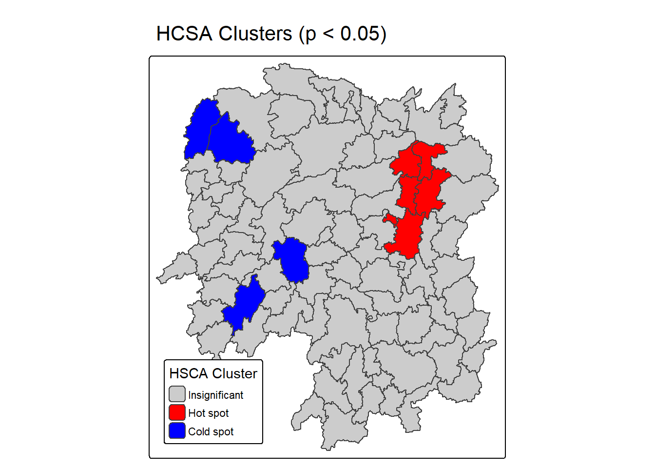 HCSA_cluster,levels = c("Insignificant", "Hot spot", "Cold spot")